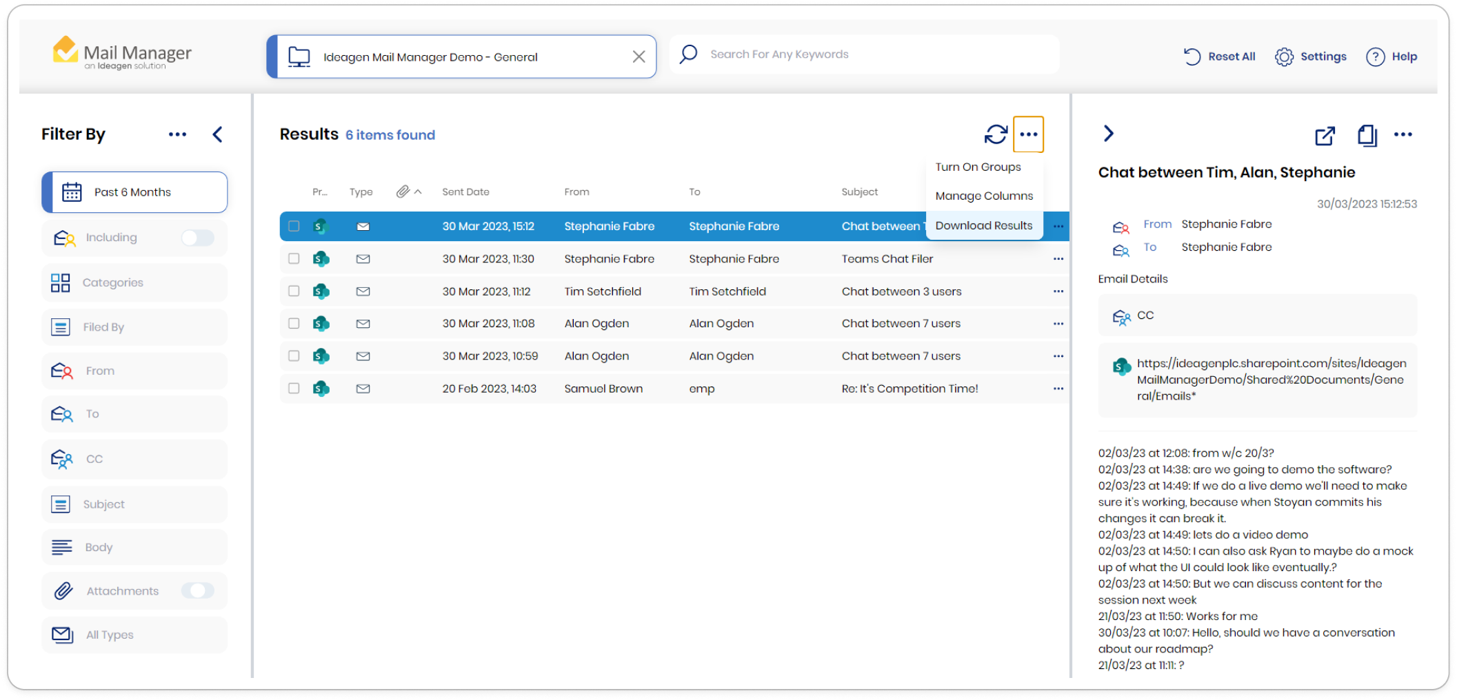 Export a list of results from the Search