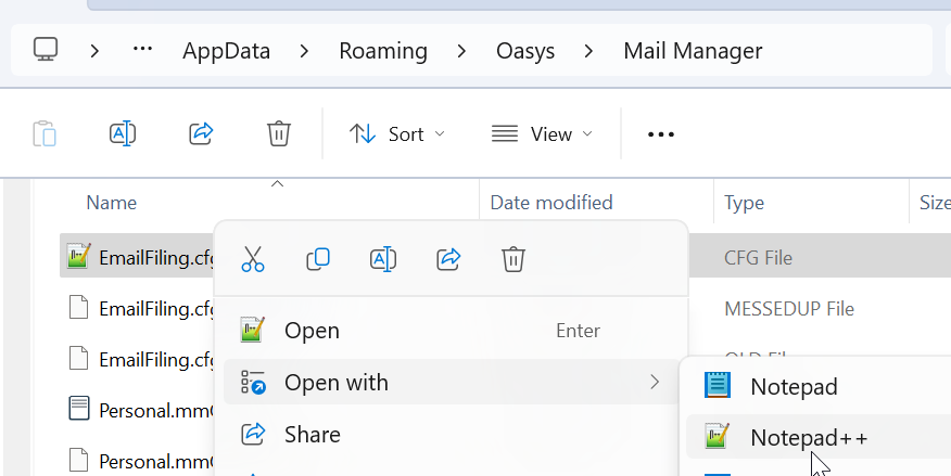 - Navigate to the following location: %appdata%\Oasys\Mail Manager\