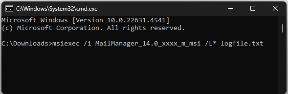 - Type in msiexec /i <name_of_msi> /L* logfile.txt.