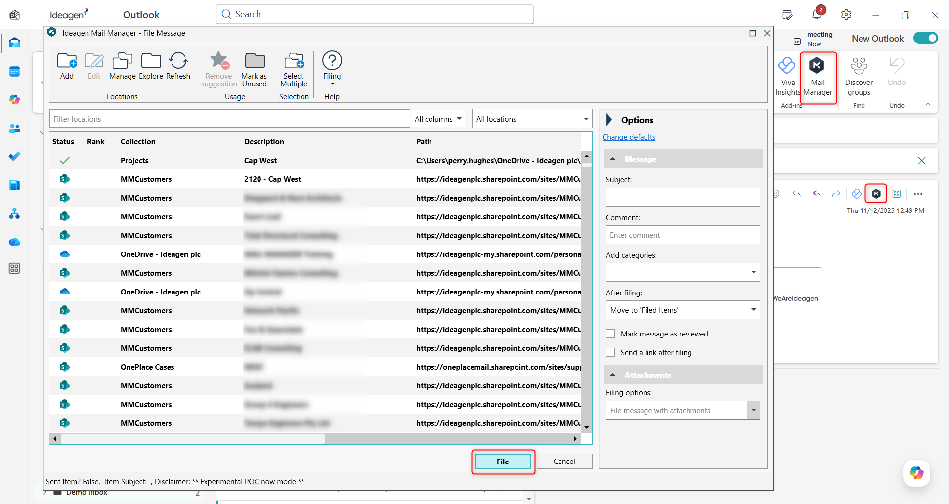 - Open New outlook then send an email, you should receive the Mail Manager filing prompt after a few seconds.