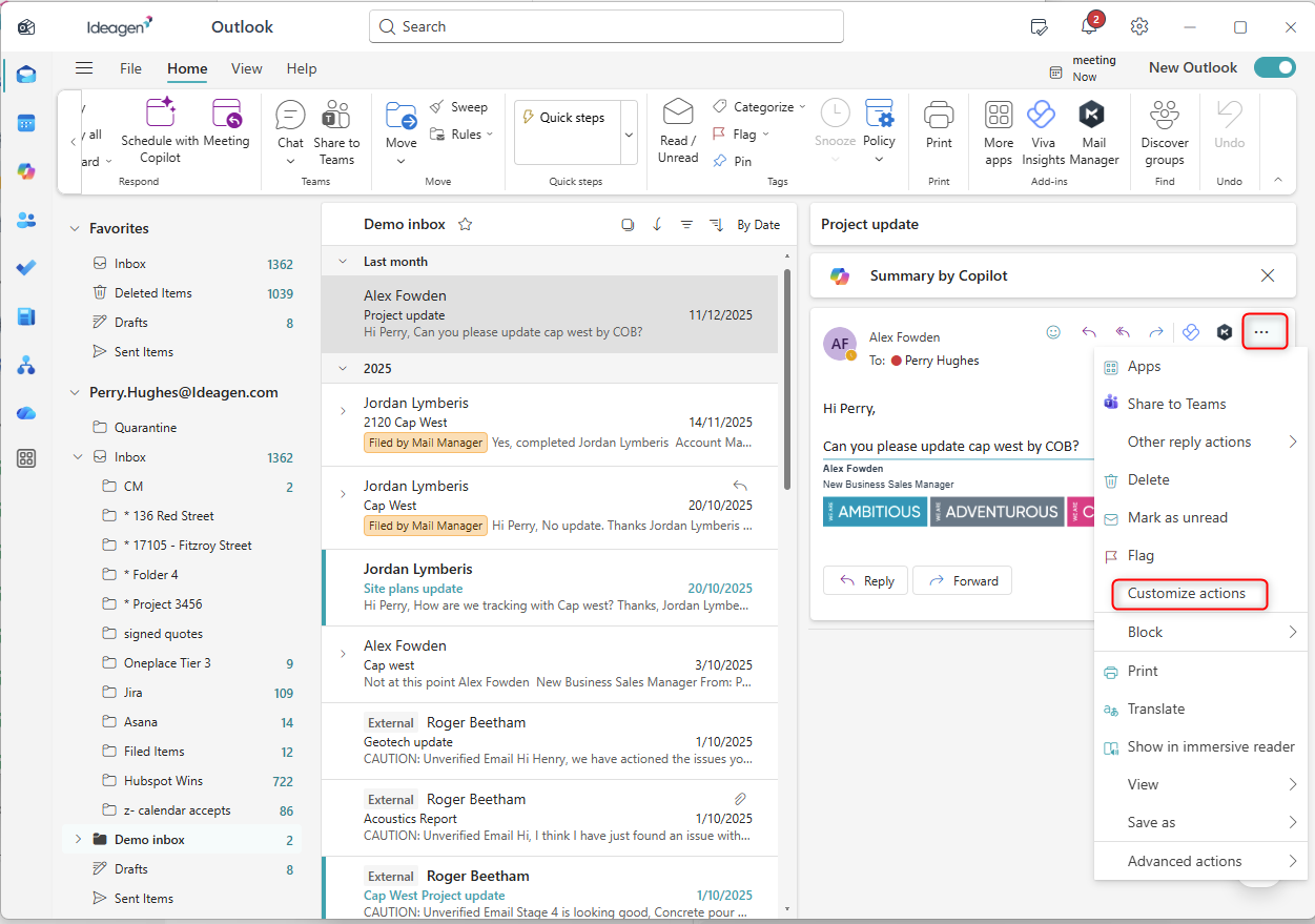 - Set up Mail Manager desktop with New Outlook