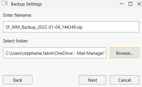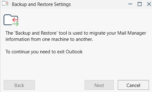 Before migrating a User's Mail Manager information from one machine to another, we recommend backing it up. Backups contain their preference settings, Collection files located on Local drives, and suggested Location information. This article walks you through the process of creating and restoring this information.