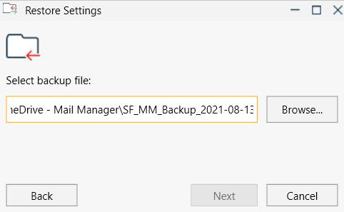 - Browse to the backup file.