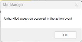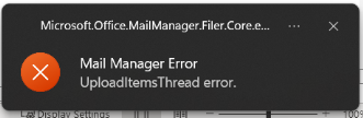 - Unhandled Exception Occurred in the action event (Mail Manager Error - UploadItemsThread error)